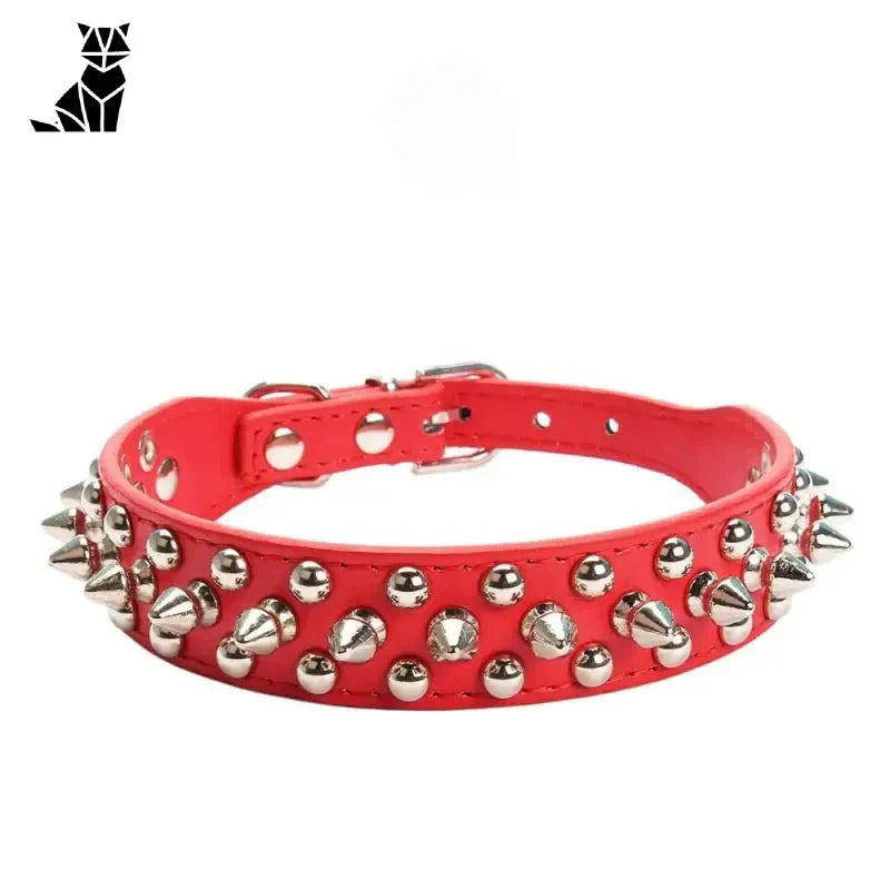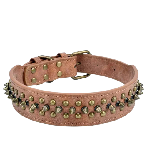 "Mit einem doppellagigen Stoff in der Mitte entworfen, ist dieses Halsband robust und langlebig. Sie müssen sich keine Sorgen mehr machen, dass es bei Ihren gemeinsamen Abenteuern bricht! Mit seinen Punk-Nieten verleiht es dem Aussehen Ihres Hundes einen kühnen und eleganten Touch, wodurch er der coolste aller Caniden wird. Die durchdachte Polsterung sorgt den ganzen Tag über für unvergleichlichen Komfort für Ihren Liebling."