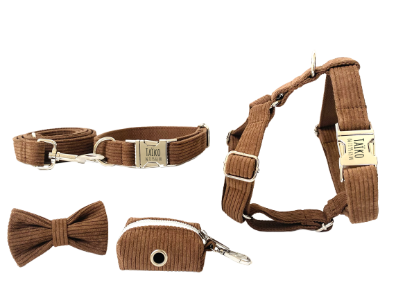Verleihen Sie Ihrem treuen Begleiter einen schicken und raffinierten Stil mit unserem kompletten Hundeset aus hochwertigem, gestreiftem Schokoladenvelours! Jedes Teil dieses Sets wurde sorgfältig entworfen, um Komfort und Eleganz zu vereinen, sodass Ihr Hund immer modisch aussieht. Ob für einen Spaziergang im Park oder einen Abend mit Freunden, dieses Set ist perfekt für jeden Anlass. Mit Teilen, die vom Halsband über das Geschirr bis hin zur Leine und einer adorablen Fliege reichen, können Sie je nach Bedarf ein oder mehrere Teile auswählen. Warten Sie nicht länger, um den Look Ihres Begleiters zu verschönern!